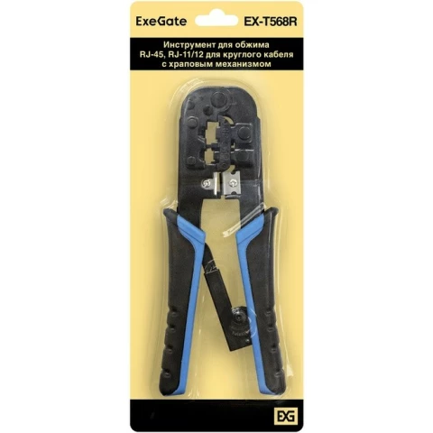 инструмент для зачистки и обжима RJ-45, RJ-11/12 для круглого кабеля с храповым механизмом