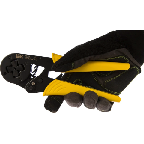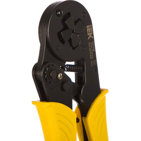 Бренд: IEKклещи для обжима, квадратный профиль с рифлением, предназначены для опрессовки наконечников-гильз Е, НГИ2 и НГ сечением 6 - 16 кв.мм, храповой механизм, саморегулирующаяся матрица, удобные ручки, поворотный регулятор усилия