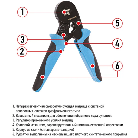 кримпер для обжима штыревых клемм в диапазоне 0.25 - 6.0 мм2