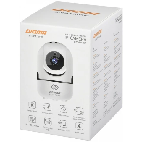 Бренд: Digmaсферическая IP камера, 1280x720, 15 к/с, 1 Мп, матрица 1/4", фокусное расстояние: 2.8 мм, ИК-подсветка, Wi-Fi, слот для карт памяти, питание: от сети