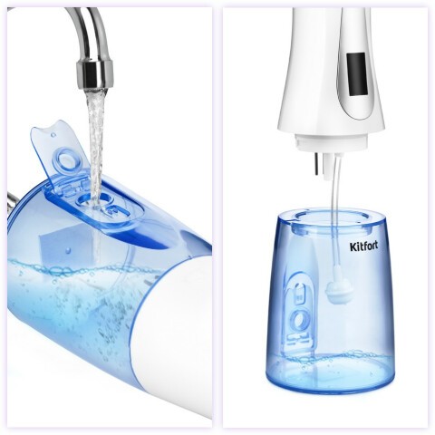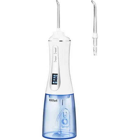 Бренд: Kitfortпринцип работы: импульсный, питание: от аккумулятора, частота пульсации воды: 1800 импульсов/мин, насадки: для струйной чистки, режим струи, количество регулировок: 5, емкость резервуара: 350 мл, время непрерывной работы: 40 мин, автоматическое отключение