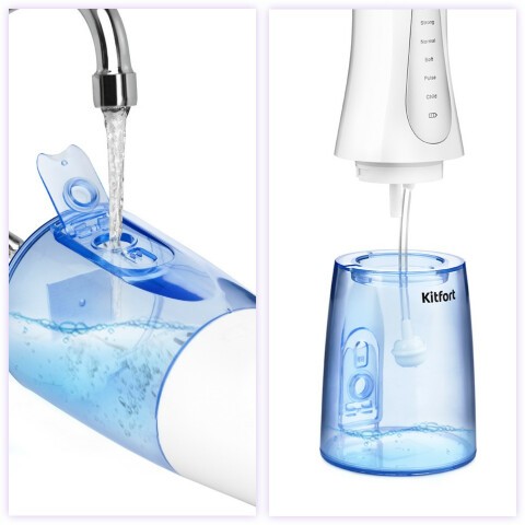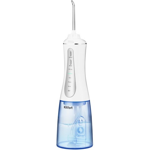 Бренд: Kitfortпринцип работы: импульсный, питание: от аккумулятора, частота пульсации воды: 1800 импульсов/мин, насадки: для струйной чистки, режим струи, количество регулировок: 5, время непрерывной работы: 40 мин, автоматическое отключение