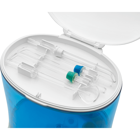 ирригатор, питание от сети, режимов и регулировок: 10, насадок: 4, резервуар для жидкости 600 мл, режим струи