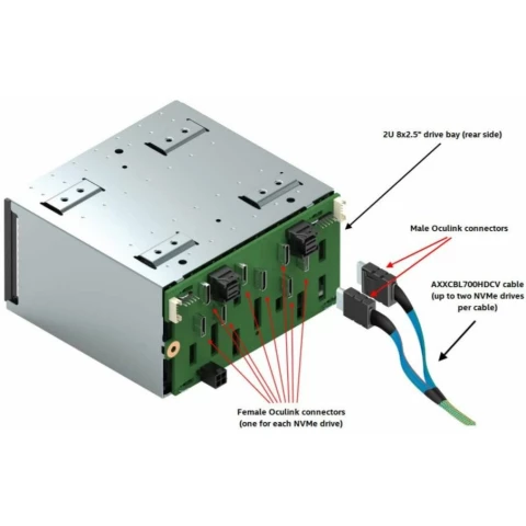 набор кабелей Oculink Trimode miniSAS HD 2xNVMe Drive, коннекторы: SFF-8643 Mini-SAS HD, SFF-8611 Mini-SAS HD, 70см
