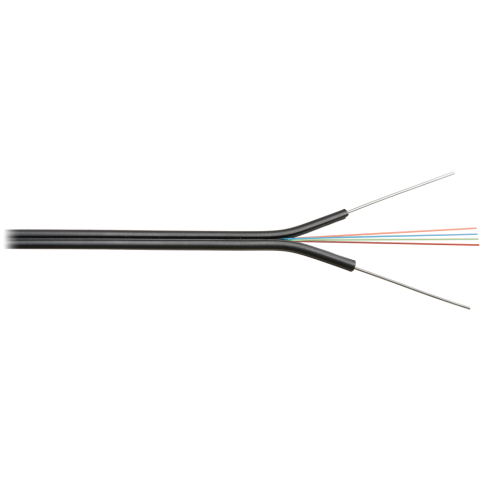 кабель волоконно-оптический, 2 волокна, одномодовый 9/125мкм, стандарта G.657.A1 & G.652.D, внутренний/внешний, бабочка со стальными прутками, LSZH -40C нг(A)-HFLTx, черный, 1000 м