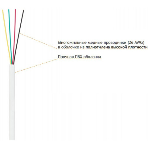 кабель телефонный, плоский, 4 жилы, внутренний, многожильный, белый, 100м