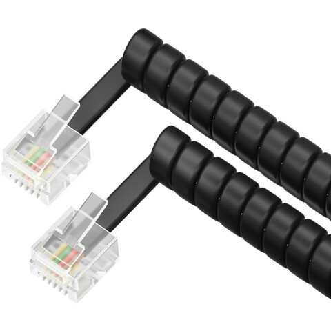 Бренд: Greenconnectкабель телефонный 6P4C, 4-жильный, плоский, спираль, чёрный, 5м