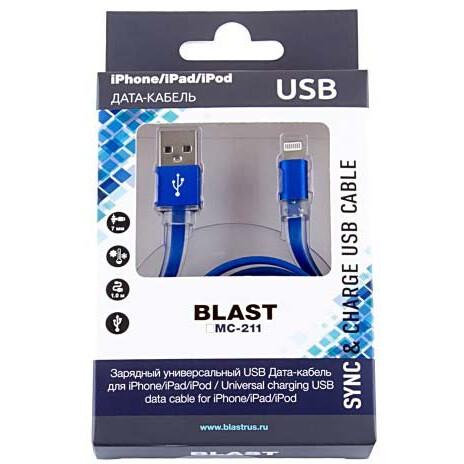 Кабель USB - Lightning, 1м, Blast BMC-211 Cyan_0