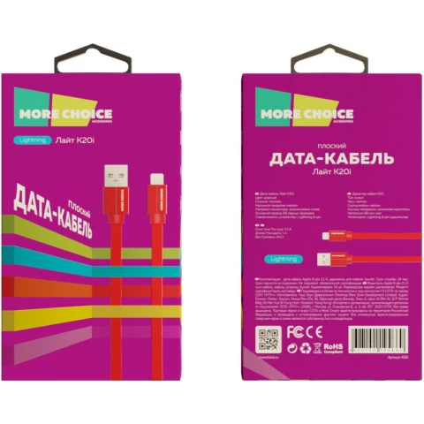 Кабель USB - Lightning, 1м, More Choice K20i Red