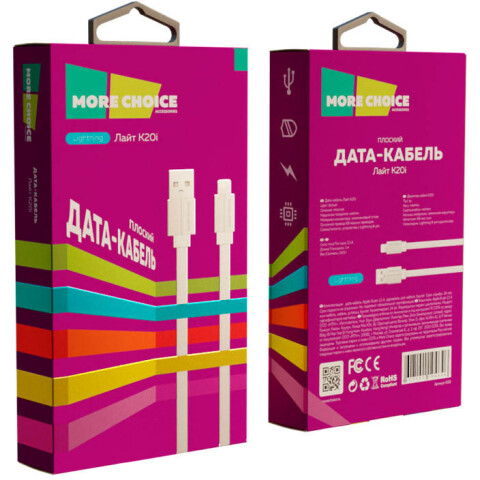 Кабель USB - Lightning, 1м, More Choice K20i White