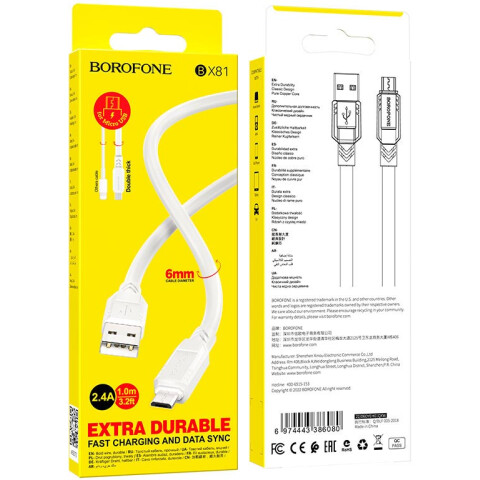 Кабель USB - microUSB, 1м, Borofone BX81 White