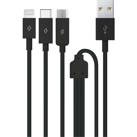 Кабель USB - microUSB/USB Type-C/Lightning, 1.2м, ttec 2DK7521S Black