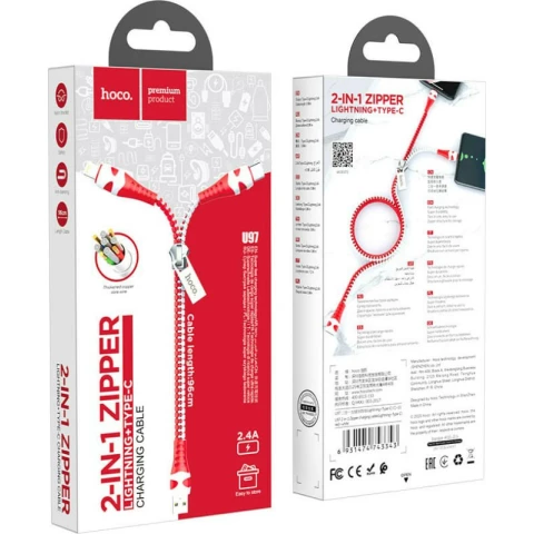 Кабель USB Type-C - USB Type-C/Lightning, 1.2м, HOCO U97 White/Red (HC-43343)_0