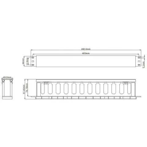 кабельный организатор пластиковый с крышкой, глубина 75 мм, 19", 1U