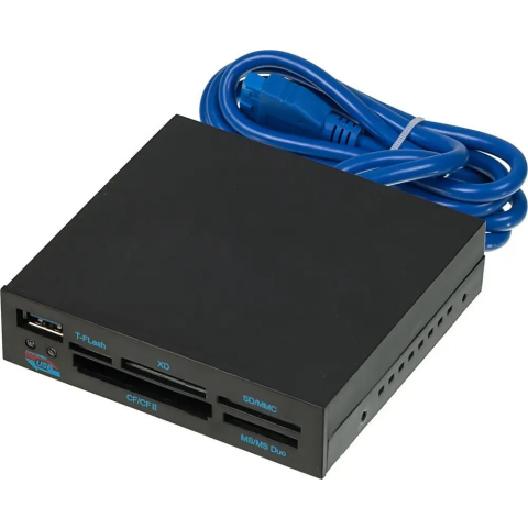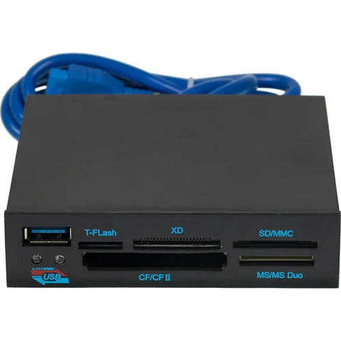 внутренний 3.5" кардридер, подключение через USB 3.0, поддержка карт SD, MMC, microSD, Compact Flash, xD, Memory Stick, Memory Stick Duo, miniSD, Memory Stick Micro, Memory Stick Pro, CFast 2.0, TransFlash (TF), RS-MMC