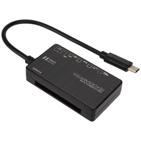 внешний кардридер, подключение через USB Type-C, поддержка карт SD, microSD, Memory Stick, Memory Stick Duo, Memory Stick Pro