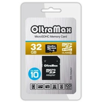 Карта памяти 32Gb MicroSD OltraMax + SD адаптер (OM032GCSDHC10-AD)