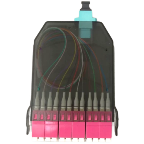 кассета волоконно-оптическая, для MTP/MPO кросса, 1 слот, многомодовая 50/125 мкм, стандарта OM4, 1x MTP/male - 12x LC/UPC, полярность А, премиум, прозрачная