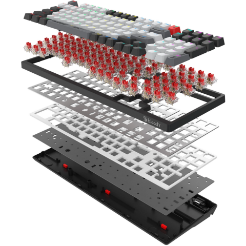 с проводным/беспроводным соедине клавиатура (Bluetooth/радиоканал), механическая, переключатели BLMS Red Plus, цифровой блок, подсветка клавиш, USB