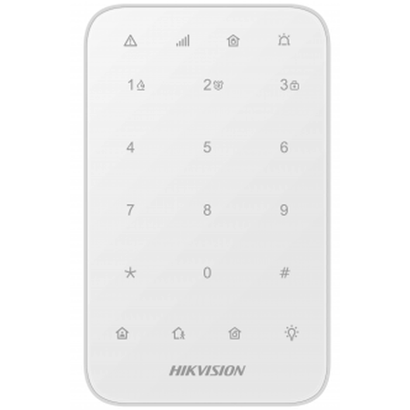 Бренд: Hikvisionклавиатура охранной панели, которая может быть подключена к AX PRO для контроля и управления тревожными событиями, поддерживается извещение о тревоге при помощи индикатора и бипера, дальность р/ч передачи: 1200 м, питание от 4x AA батарей