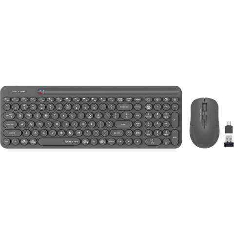 Бренд: A4Techбеспроводная клавиатура + мышь (радиоканал), 2000 dpi, цифровой блок, USB, цвет: серый