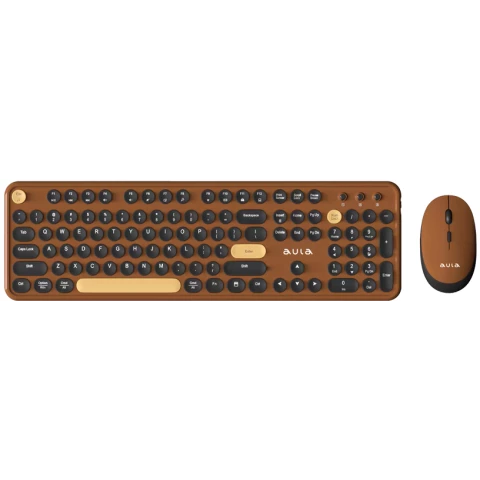 Бренд: AULAбеспроводная клавиатура + мышь (радиоканал), 1600 dpi, цифровой блок, USB, цвет: коричневый