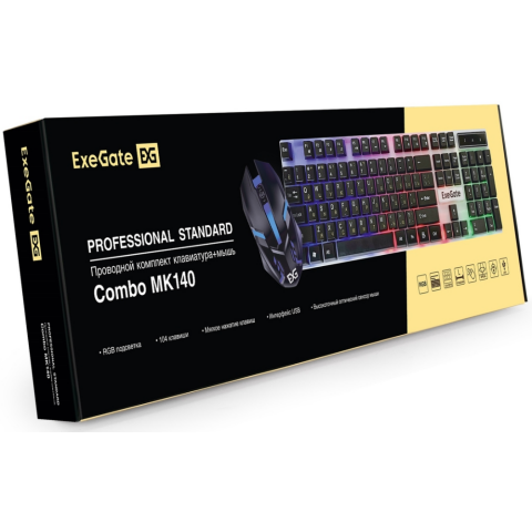 клавиатура + мышь, 1000 dpi, цифровой блок, подсветка клавиш, USB, цвет: чёрный