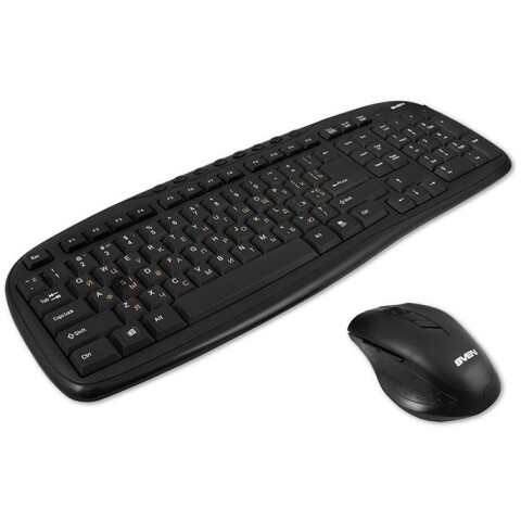 беспроводная клавиатура + мышь (радиоканал), 1600 dpi, цифровой блок, USB, цвет: чёрный