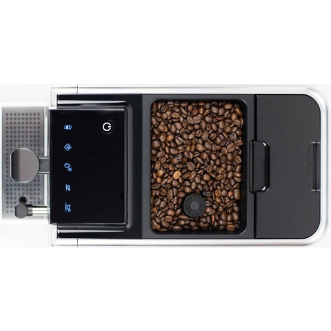 автоматическая, для зернового кофе, кофемолка с регулировкой степени помола, регулировка порции воды, приготовление капучино, отключение при неиспользовании, подсветка рабочей зоны, дисплей, корпус из пластика