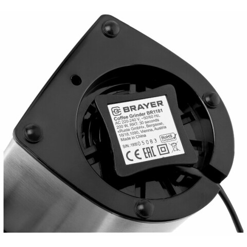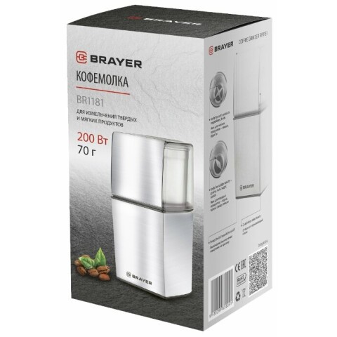 система помола: ротационный нож, мощность 200 Вт, вместимость 70 г, блокировка включения без крышки