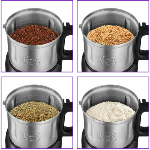 система помола: ротационный нож, мощность 500 Вт, вместимость 1200 г, импульсный режим, блокировка включения без крышки