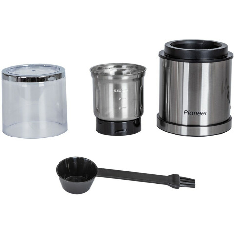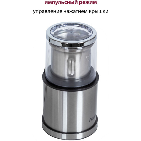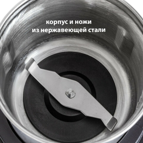 система помола: ротационный нож, мощность 200 Вт, вместимость 75 г, импульсный режим, блокировка включения без крышки