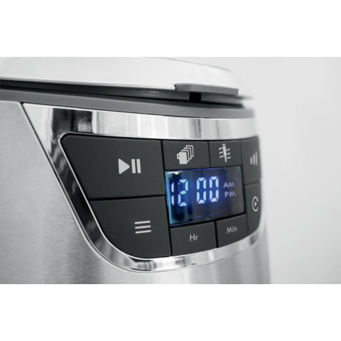 капельная кофеварка, для молотого кофе, контроль крепости кофе, настройка времени старта, отключение при неиспользовании, постоянный/одноразовый фильтр, дисплей, металлический корпус