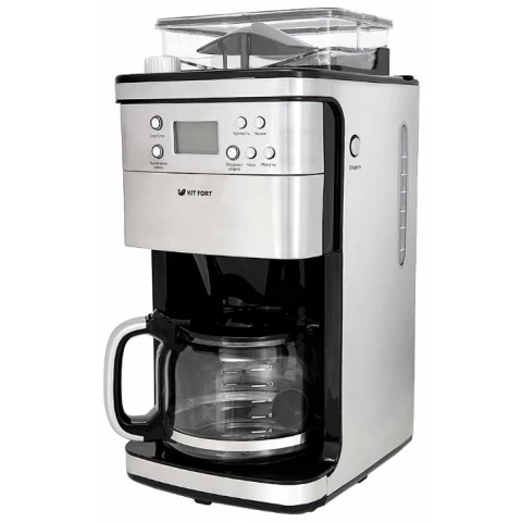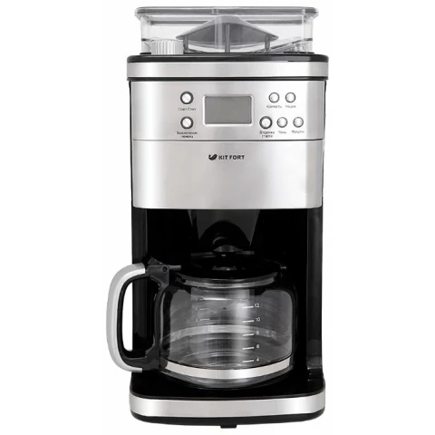 капельная кофеварка, для молотого кофе, кофемолка, настройка времени старта, отключение при неиспользовании, дисплей, корпус из пластика