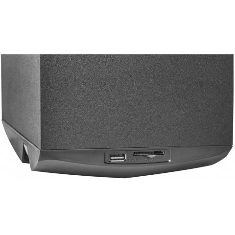 компьютерная акустика 2.1, мощность 18 Вт, диапазон частот: 40-20000 Гц, питание от сети, радиотюнер, пульт ДУ