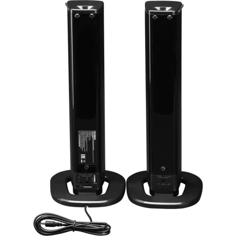 компьютерная акустика стерео, мощность 60 Вт, диапазон частот: 20-20000 Гц, корпус из пластика, питание от сети, от батарей