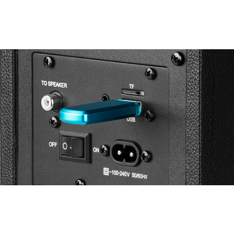 компьютерная акустика стерео, мощность 50 Вт, диапазон частот: 40-25000 Гц, корпус из MDF, питание от сети, разъём для наушников, пульт ДУ