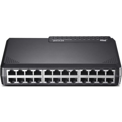 управление коммутатором: неуправляемый, 24 порта Ethernet 100 Мбит/с, размеры 310 x 70 x 200 мм