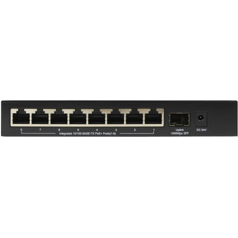 коммутатор неуправляемый, 8 портов Ethernet 100 Мбит/с, 1 порт SFP до 1 Гбит/с, поддержка PoE