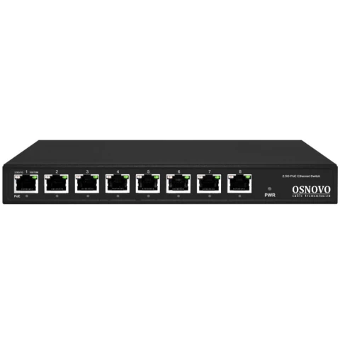 коммутатор неуправляемый, 8 портов Ethernet до 2.5 Гбит/с, поддержка PoE, размеры 223 x 28 x 113 мм