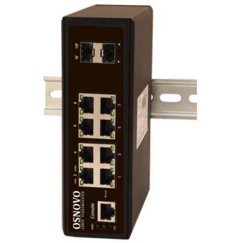 промышленный управляемый коммутатор, уровень 2+, 8 портов Ethernet до 1 Гбит/с, 2 порта SFP до 1 Гбит/с