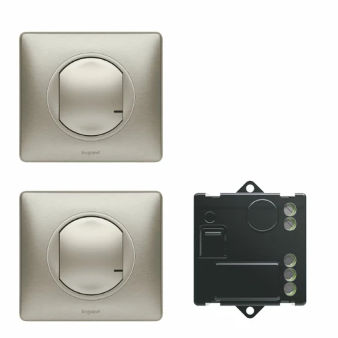комплект управления освещением, типы устройств: 2xбеспроводной выключатель, реле, питание от батарейки, беспроводная связь: Wi-Fi, RF, совместимость с Legrand Home+Control