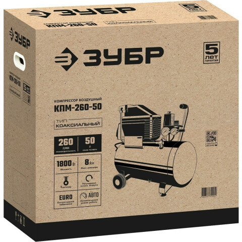 компрессор поршневой коаксиальный, масляный, 260 л/мин, давление 8 бар, ресивер на 50 л