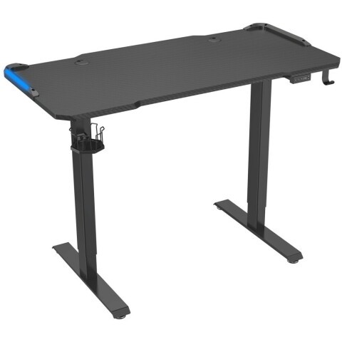 игровой стол, материал столешницы: МДФ, металлический каркас, нагрузка до 80 кг, регулировка по высоте, подсветка, держатель для наушников, отверстия для кабелей, подстаканник