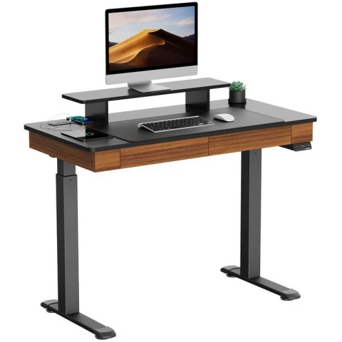 компьютерный стол, материал столешницы: дерево, металлический каркас, нагрузка до 100 кг, регулировка по высоте, отделение для аксессуаров, полка для монитора, 2xUSB-разъём, беспроводная зарядка