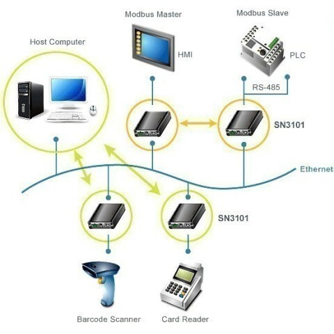 1 портовый консольный сервер доступа по IP для промышленных устройств, для одного компьютера, интерфейс: Serial (RS-232/ RS-485/ RS-422)