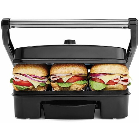 контактный гриль, мощность: 1500 Вт, антипригарное покрытие, поддон для сбора жира, механическое управление, регулировка температуры