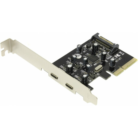 контроллер, позволяющий доустановить в компьютер 2 самых современных порта USB 3.1 Type C, интерфейс: PCI Express 4x 3.0, чип: Asmedia ASM1142, питание: от SATA коннектора, разъем дополнительного питания для USB разъемов
