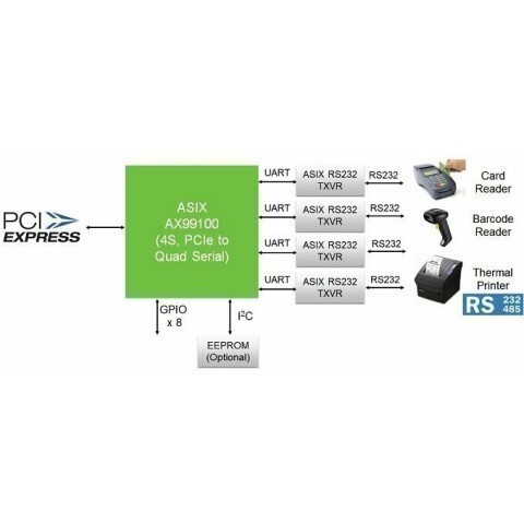 низкопрофильный контроллер последовательного интерфейса, 4 внешних COM-порта, интерфейс подключения контроллера: PCI Express 1x, скорость передачи данных: 1 Мбит/с