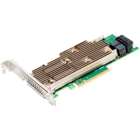 RAID-контроллер, тип: MegaRAID, Tri-Mode 12Gb/s SAS/SATA/PCIe (NVMe), интерфейс PCI-Express x8, 8 внутр. портов SAS/SATA: 2x Mini-SAS HD SFF8643 (x4), 2GB 2133МГц DDR4, чип: SAS3508 Dual-Core (ROC), 256 SAS/SATA устр-в